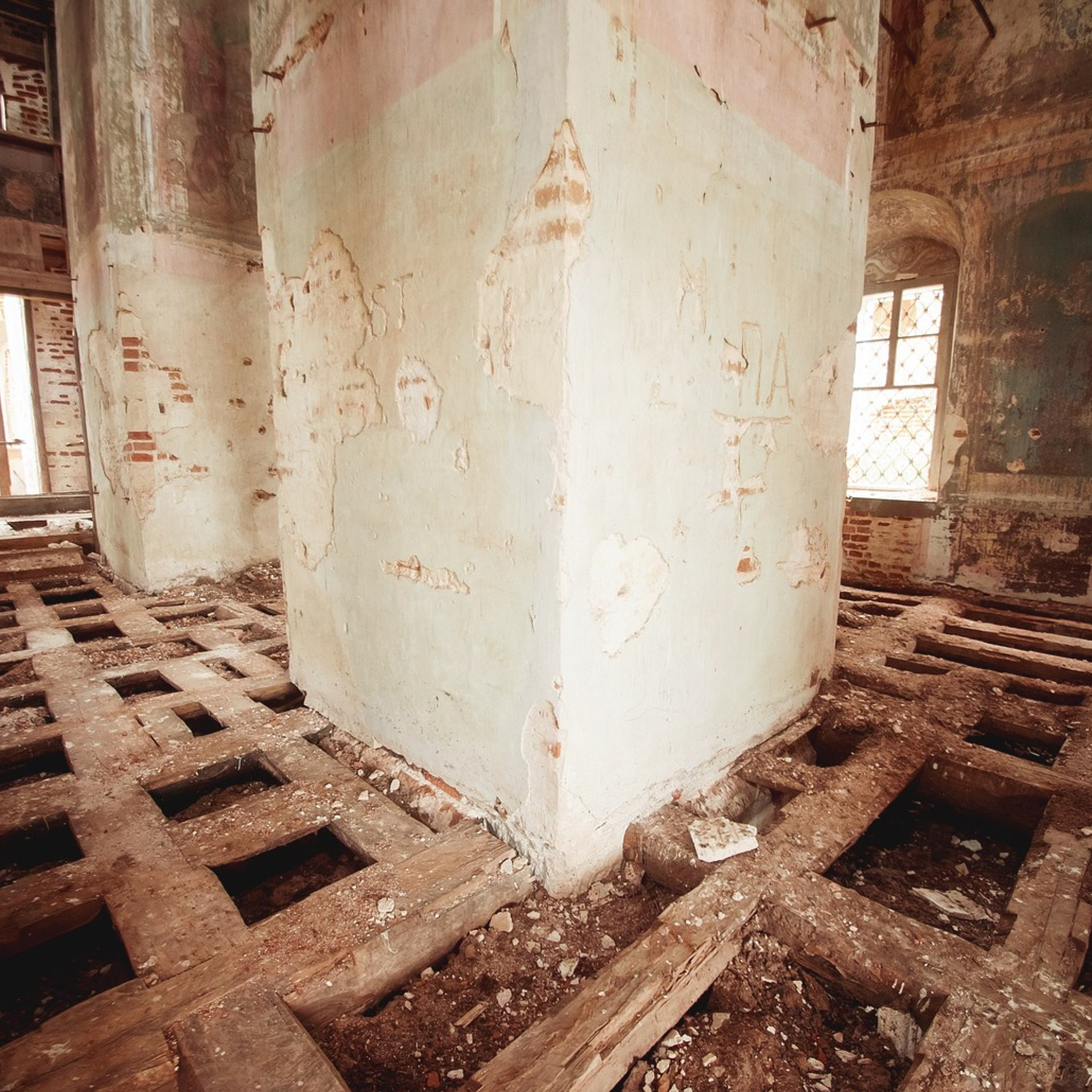 Громадное здание заброшенное и обветшалое. Однако, всё ещё хранит росписи на стенах и примечательно своей архитектурой. Колокольня соединена с храмом коридором из лестницы с арками из красного кирпича. Своды действительно впечатляют. Моя любимая фотография оттуда — симметричный кадр с ракурса глядящего вверх. Крест на главном куполе погнут, с чем связаны некоторые легенды про идеологически коммунистичного хулигана.